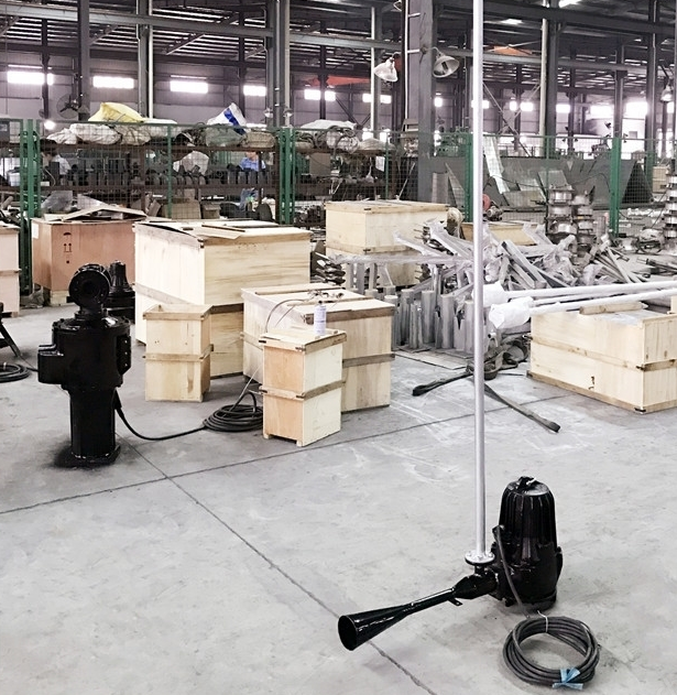 潜水射流曝气机配进气管、消声器和现场控制箱安装使用。
