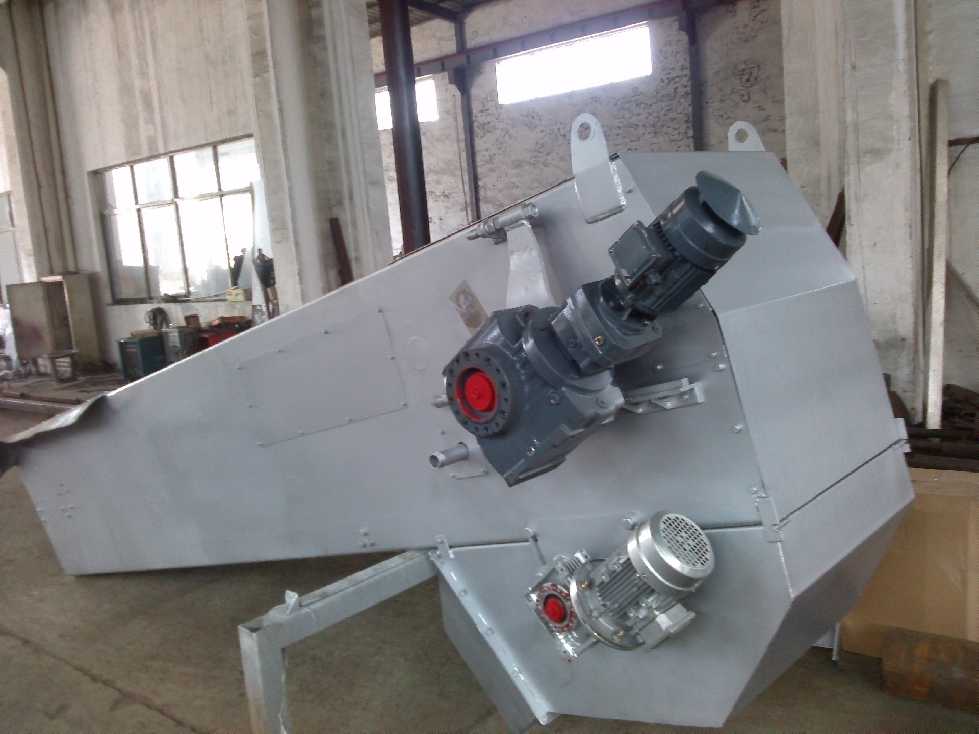 阶梯格栅是由一种耙齿装配成一组回转格栅链。在电机减速器的驱动下,耙齿链进行逆水流方向回转式运动。