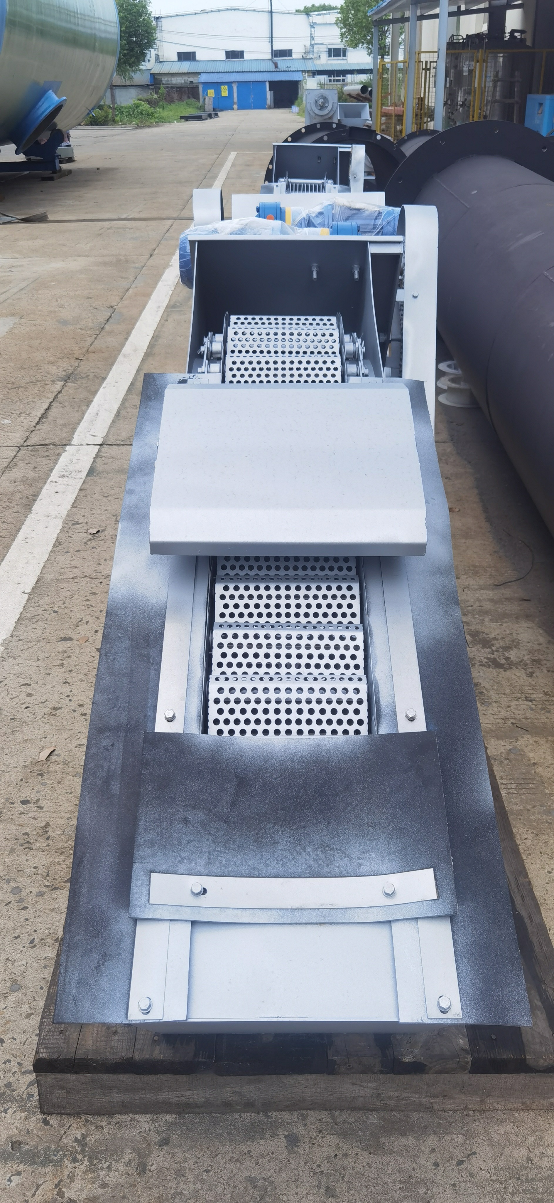 耙齿链运转到设备的上部时,由于槽轮和弯轨的导向,使每组耙齿之间产生相对自清运动,绝大部分固体物质靠重力落下。另一部分则依靠清扫器的反向运动把粘在耙齿上的杂物清扫干净。